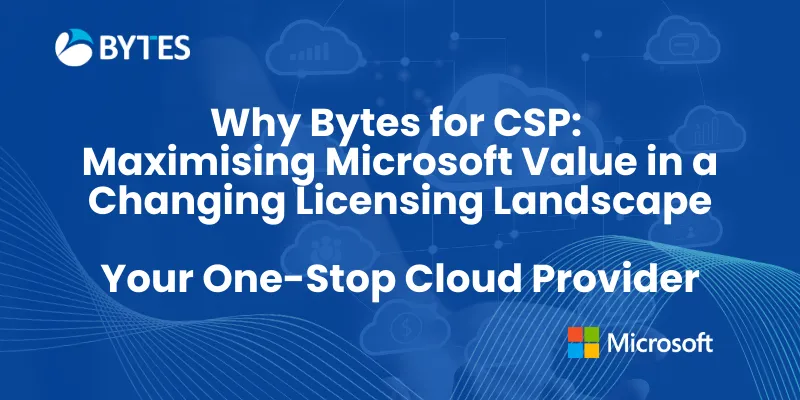 In case you missed our recent “Why Bytes for CSP” webinar, here are the key takeaways on how Bytes, as your Cloud Solution Provider (CSP) partner, goes beyond licensing to help you maximize ROI and navigate Microsoft’s evolving landscape. We discussed why Bytes is your one-stop Microsoft partner, how we support you through upcoming Microsoft pricing changes, and the ways we work together to ensure you get the most value from your cloud investments.