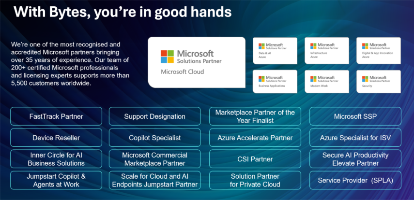 Ahead of our upcoming webinar, here’s a look at why Bytes is the trusted choice for CSP — and how we can help you transform your Microsoft experience.
