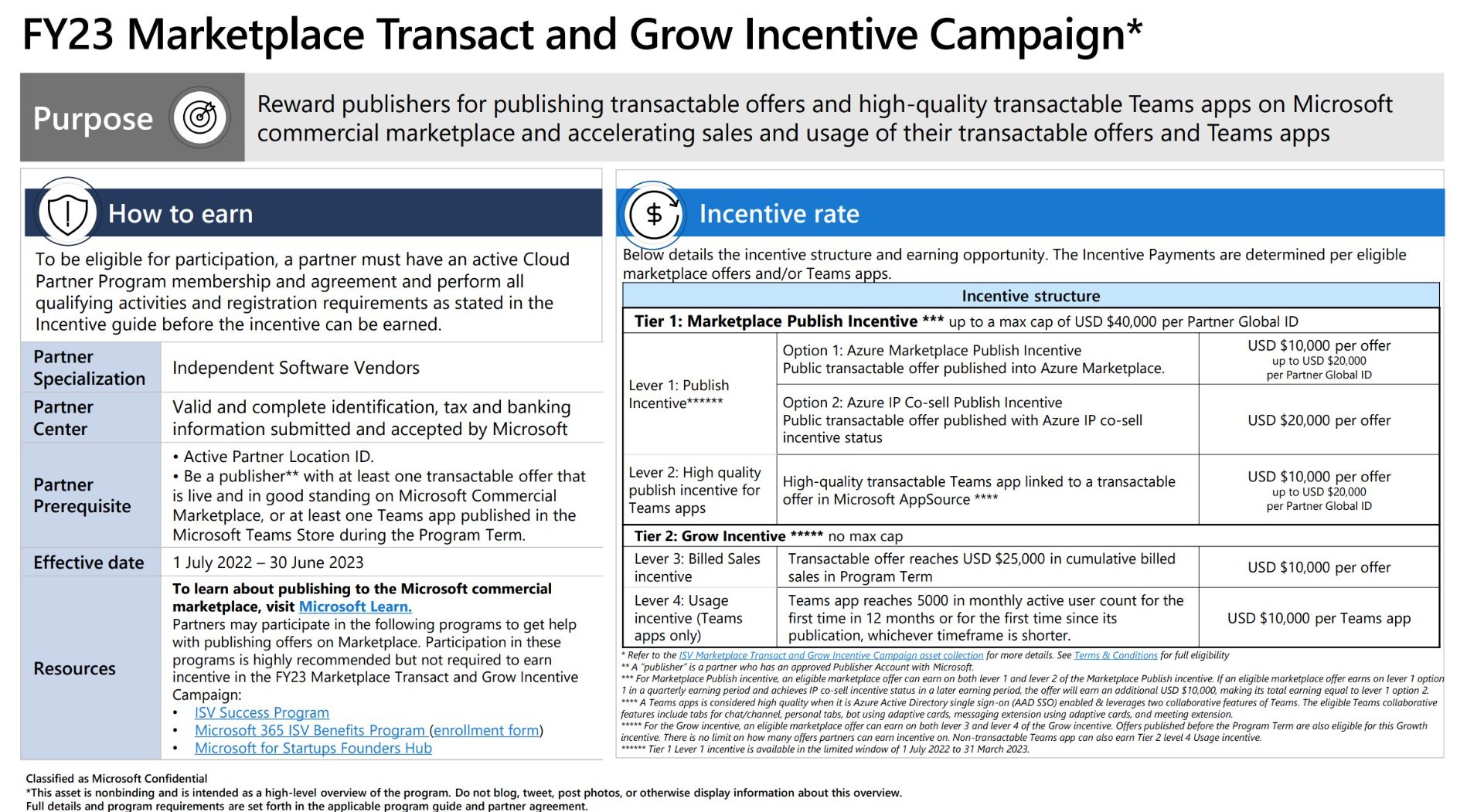 Participants can earn up to USD 30,000 per Marketplace offer when publishing a transactable offer and up to $20,000 per Marketplace offer when reaching billed sales and usage milestone.
