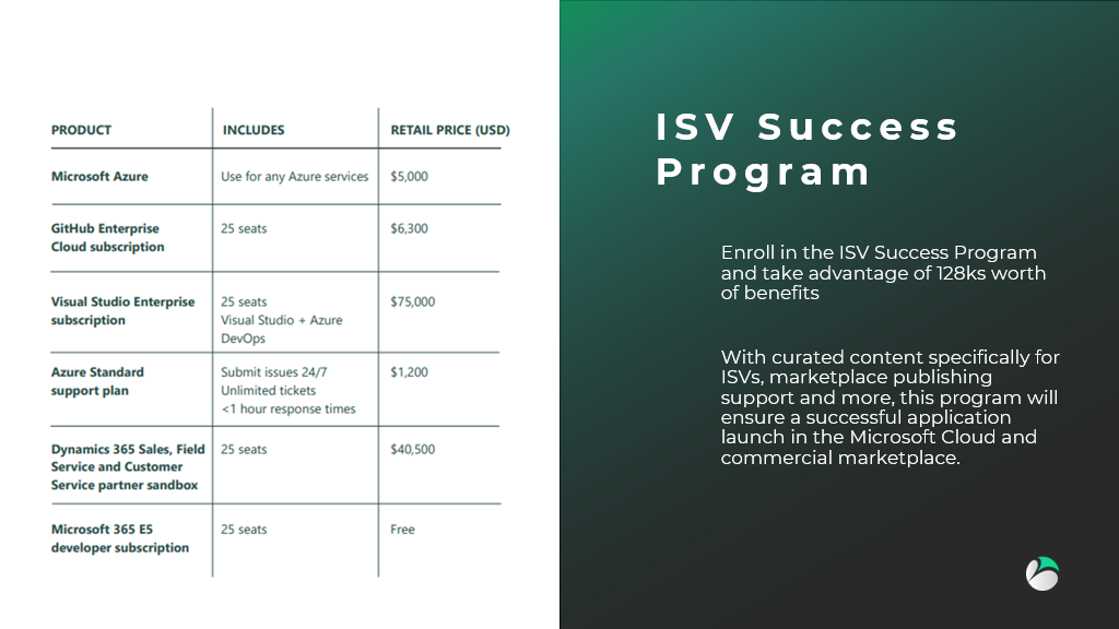 Enrol in the ISV Success Program and unlock $126,000+ worth of Microsoft benefits, including: